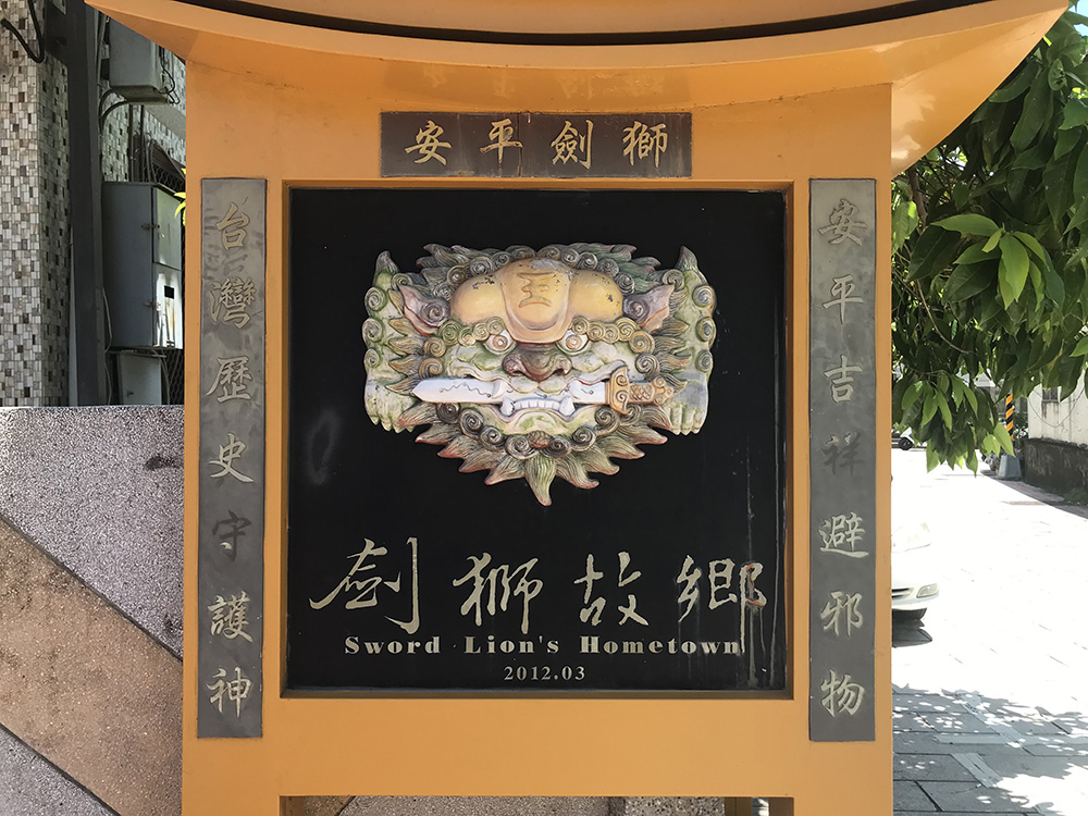 路地を歩けば、この地区特有の「剣獅」という魔よけのレリーフが家の壁に見られます。